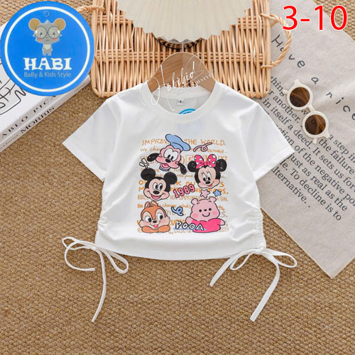 A490519 - Áo thun bé gái rút dây thun cotton 4c in Mickey những người bạn_Size 3-10