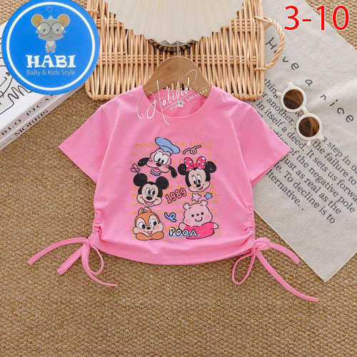 A490521 - Áo thun bé gái rút dây thun cotton 4c in Mickey những người bạn_Size 3-10