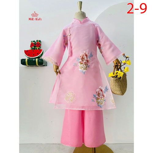 A490528 - Set áo dài 2 tà thêu hoa cổ tàu truyền thống viền bọc cổ tỉ mỉ may 2 lớp, chất liệu tơ hàn