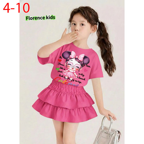 A490857 - Set váy dập ly ren cực xinh cho bé thun coton 4 chiều áo in cô bé_Size 4-10