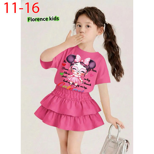 A490860 - Set váy dập ly ren cực xinh cho bé thun coton 4 chiều áo in cô bé_Size 11-16