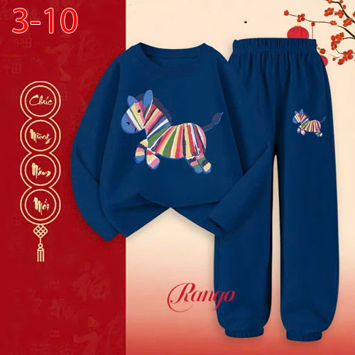 A490960 - Bộ thun tay dài cho bé trai bé gái thun cotton 4c in con ngựa_Size 3-10