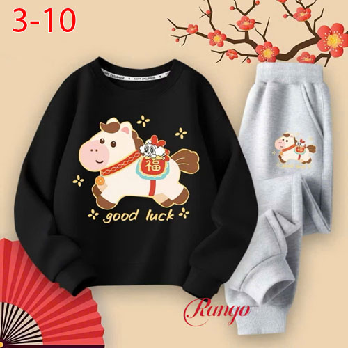 A490961 - Bộ thun tay dài cho bé trai bé gái thun cotton 4c in con ngựa_Size 3-10