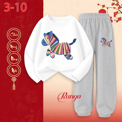 A490966 - Bộ thun tay dài cho bé trai bé gái thun cotton 4c in con ngựa_Size 3-10