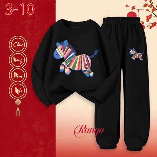 A490970 - Bộ thun tay dài cho bé trai bé gái thun cotton 4c in con ngựa_Size 3-10