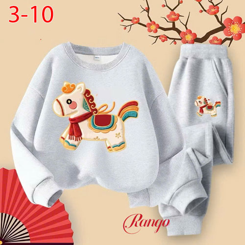 A490978 - Bộ thun tay dài cho bé trai bé gái thun cotton 4c in con ngựa_Size 3-10