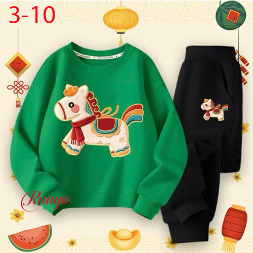 A490986 - Bộ thun tay dài cho bé trai bé gái thun cotton 4c in con ngựa_Size 3-10