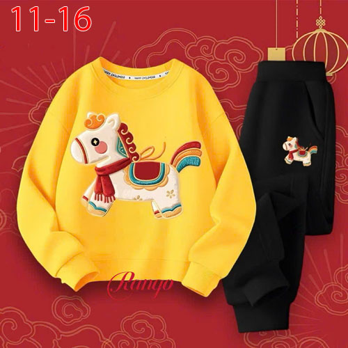 A490988 - Bộ thun tay dài cho bé trai bé gái thun cotton 4c in con ngựa_Size 11-16