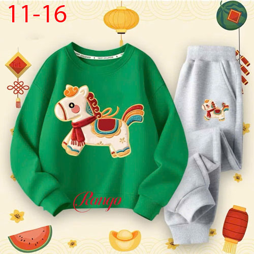 A490990 - Bộ thun tay dài cho bé trai bé gái thun cotton 4c in con ngựa_Size 11-16