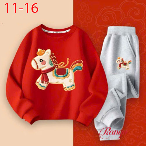 A490992 - Bộ thun tay dài cho bé trai bé gái thun cotton 4c in con ngựa_Size 11-16