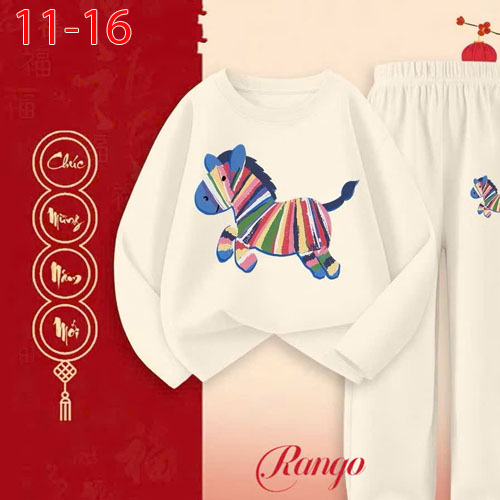 A491006 - Bộ thun tay dài cho bé trai bé gái thun cotton 4c in con ngựa_Size 11-16