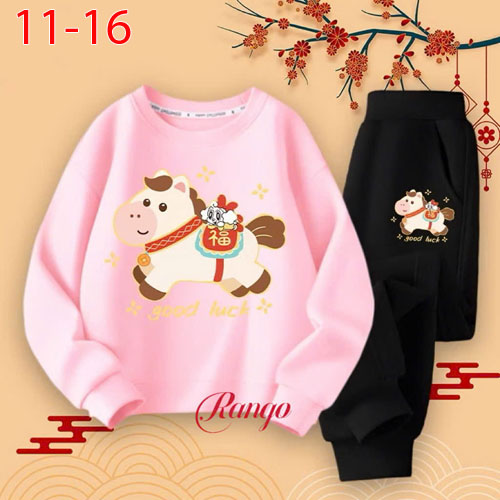 A491012 - Bộ thun tay dài cho bé trai bé gái thun cotton 4c in con ngựa_Size 11-16