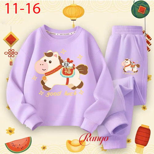 A491013 - Bộ thun tay dài cho bé trai bé gái thun cotton 4c in con ngựa_Size 11-16