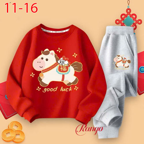 A491018 - Bộ thun tay dài cho bé trai bé gái thun cotton 4c in con ngựa_Size 11-16