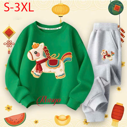 A491027 - Bộ thun tay dài cho bé trai bé gái thun cotton 4c in con ngựa_Size S-3XL