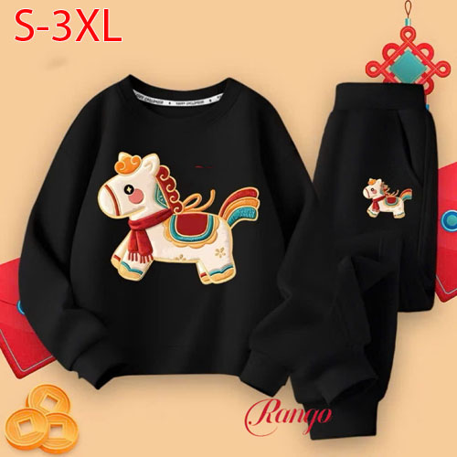 A491031 - Bộ thun tay dài cho bé trai bé gái thun cotton 4c in con ngựa_Size S-3XL