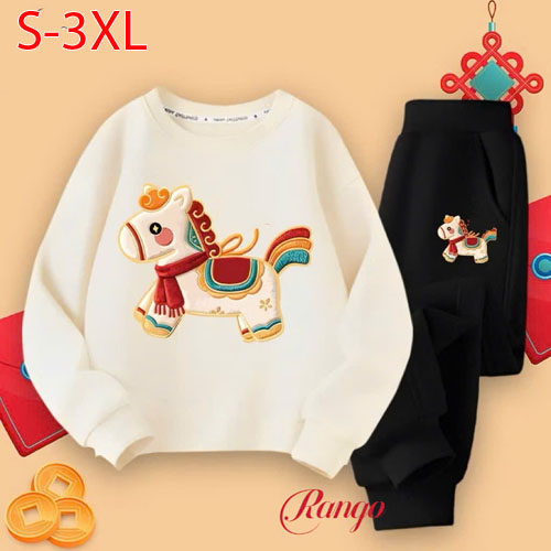 A491032 - Bộ thun tay dài cho bé trai bé gái thun cotton 4c in con ngựa_Size S-3XL