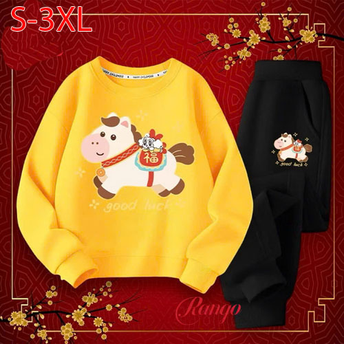 A491033 - Bộ thun tay dài cho bé trai bé gái thun cotton 4c in con ngựa_Size S-3XL