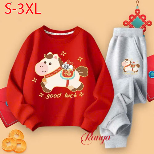 A491055 - Bộ thun tay dài cho bé trai bé gái thun cotton 4c in con ngựa_Size S-3XL