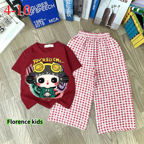 A491064 - Set quần dài caro áo thun cotton in cô bé cài mắt kính quần kate caro cotton_Size 4-10