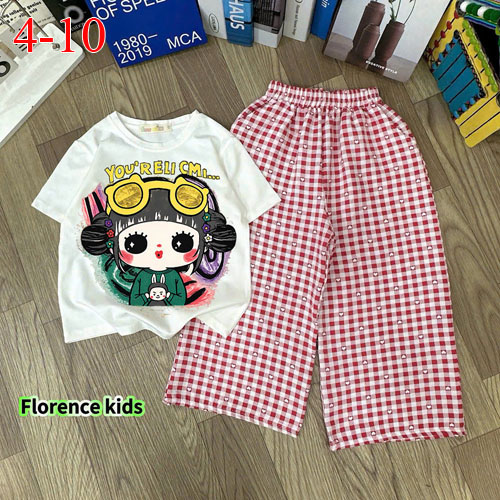 A491066 - Set quần dài caro áo thun cotton in cô bé cài mắt kính quần kate caro cotton_Size 4-10