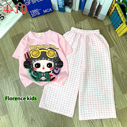 A491069 - Set quần dài caro áo thun cotton in cô bé cài mắt kính quần kate caro cotton_Size 4-10