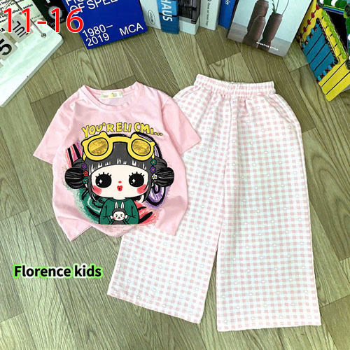 A491072 - Set quần dài caro áo thun cotton in cô bé cài mắt kính quần kate caro cotton_Size 11-16