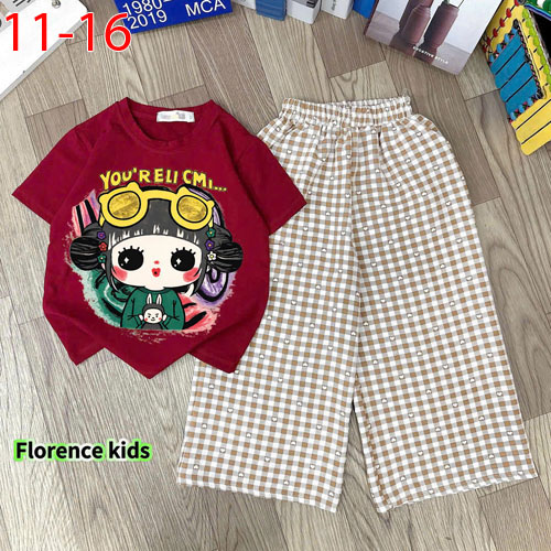 A491073 - Set quần dài caro áo thun cotton in cô bé cài mắt kính quần kate caro cotton_Size 11-16