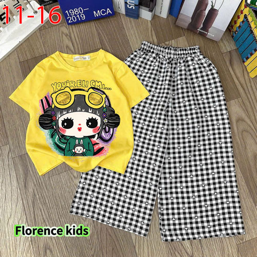 A491076 - Set quần dài caro áo thun cotton in cô bé cài mắt kính quần kate caro cotton_Size 11-16