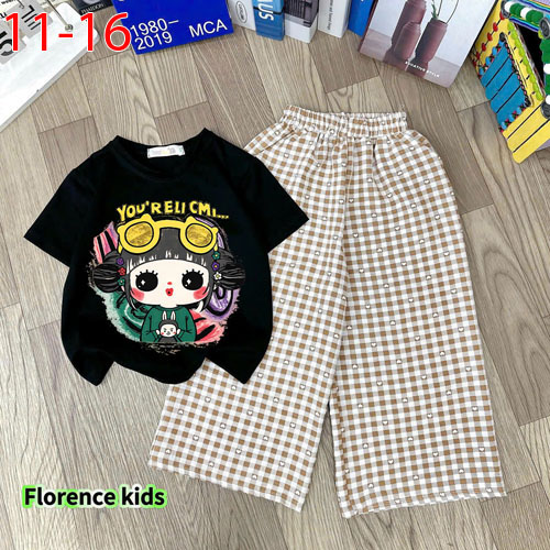 A491078 - Set quần dài caro áo thun cotton in cô bé cài mắt kính quần kate caro cotton_Size 11-16