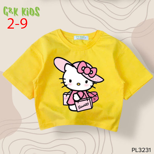 A491309 - Áo bé gái phom lững chất thun coton 4c in Kitty đi Shoping_Size 2-9