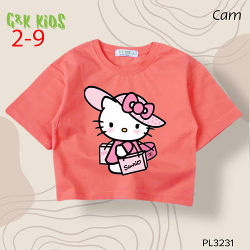 A491314 - Áo bé gái phom lững chất thun coton 4c in Kitty đi Shoping_Size 2-9