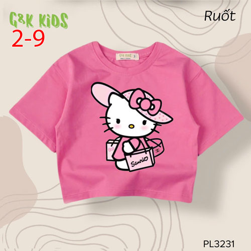 A491316 - Áo bé gái phom lững chất thun coton 4c in Kitty đi Shoping_Size 2-9