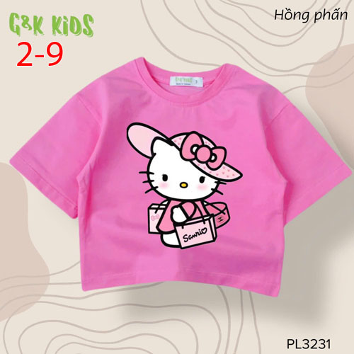 A491318 - Áo bé gái phom lững chất thun coton 4c in Kitty đi Shoping_Size 2-9