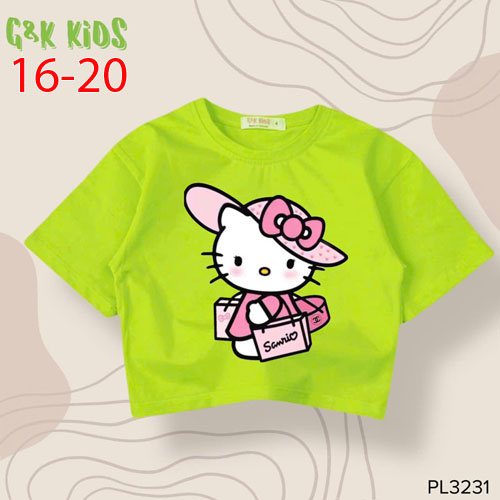 A491322 - Áo bé gái phom lững chất thun coton 4c in Kitty đi Shoping_Size 10-15