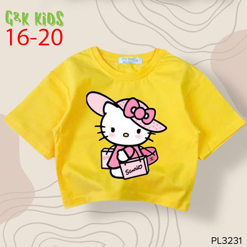 A491328 - Áo bé gái phom lững chất thun coton 4c in Kitty đi Shoping_Size 10-15