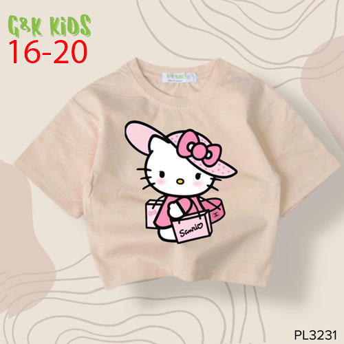A491330 - Áo bé gái phom lững chất thun coton 4c in Kitty đi Shoping_Size 10-15