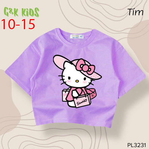 A491333 - Áo bé gái phom lững chất thun coton 4c in Kitty đi Shoping_Size 16-20
