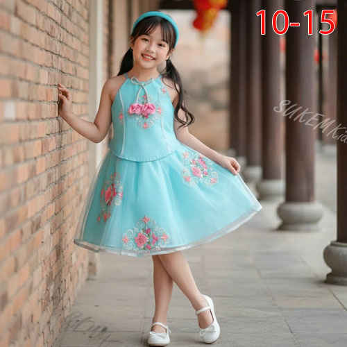 A491373 - Set áo cổ yếm chất woan thêu hoa nhập may 2 lớp 1 lớp lót coton_Size 11-15