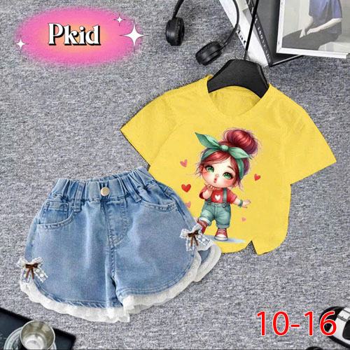 A491479 - Set bộ cho bé gái áo chất thun cotton hình in tổng hợp ,quần đùi lưng thun được may chất r