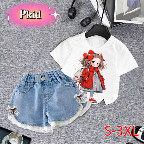 A491497 - Set bộ cho bé gái áo chất thun cotton hình in tổng hợp ,quần đùi lưng thun được may chất r