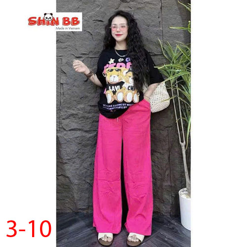 A491513 - Bộ thun thích hợp cho cả trai và gái áo tay ngắn phối cùng quần dài suông hoạ tiết tổng hợ