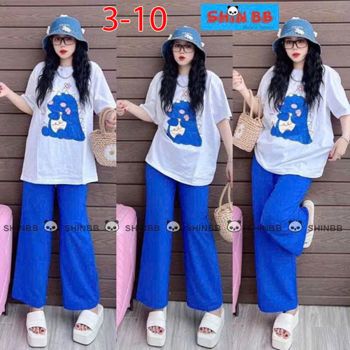 A491516 - Bộ thun thích hợp cho cả trai và gái áo tay ngắn phối cùng quần dài suông hoạ tiết tổng hợ