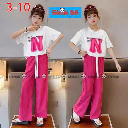 A491520 - Bộ thun thích hợp cho cả trai và gái áo tay ngắn phối cùng quần dài suông hoạ tiết tổng hợ