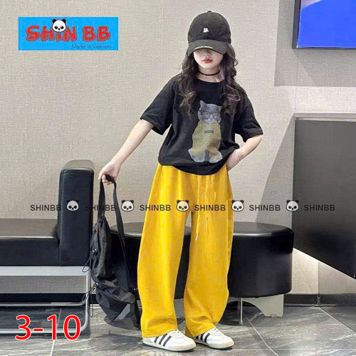 A491521 - Bộ thun thích hợp cho cả trai và gái áo tay ngắn phối cùng quần dài suông hoạ tiết tổng hợ