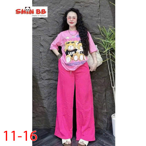 A491535 - Bộ thun thích hợp cho cả trai và gái áo tay ngắn phối cùng quần dài suông hoạ tiết tổng hợ