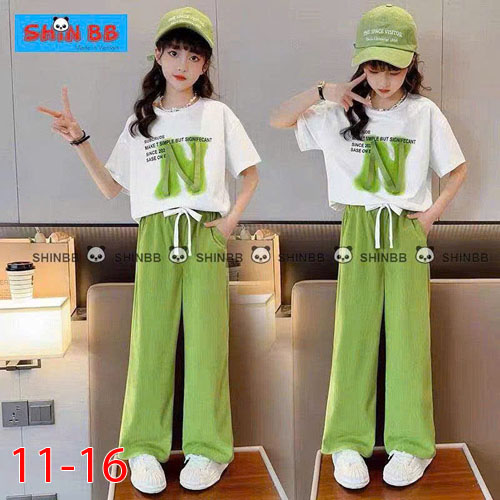 A491536 - Bộ thun thích hợp cho cả trai và gái áo tay ngắn phối cùng quần dài suông hoạ tiết tổng hợ