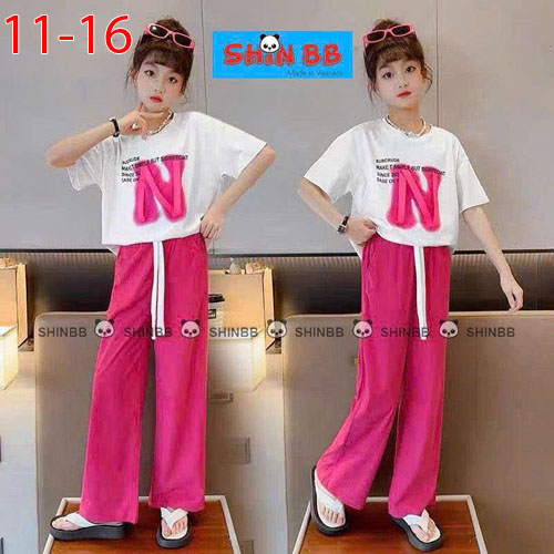 A491545 - Bộ thun thích hợp cho cả trai và gái áo tay ngắn phối cùng quần dài suông hoạ tiết tổng hợ