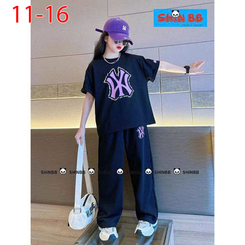 A491556 - Bộ thun thích hợp cho cả trai và gái áo tay ngắn phối cùng quần dài suông hoạ tiết tổng hợ