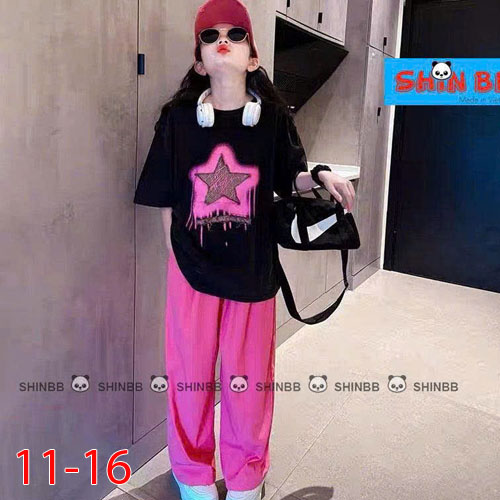 A491558 - Bộ thun thích hợp cho cả trai và gái áo tay ngắn phối cùng quần dài suông hoạ tiết tổng hợ